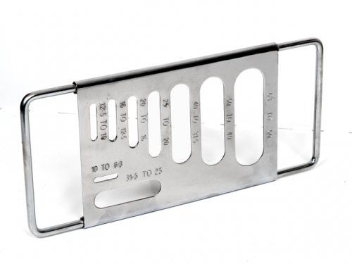 It consists of a frame with sliding panel with accurate slots of different standard width and length, the complete assembly is chrome plated or powder coated