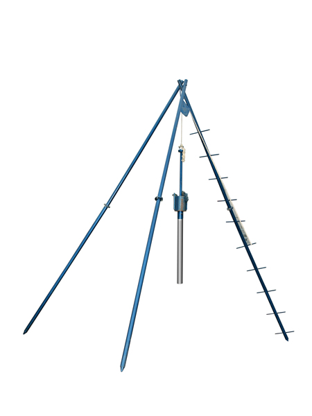- Tripod stand,6 meter high connected by a tie bolt. Each leg is made of three part for easy transport. Complete with pulleys and stairing arrangements.