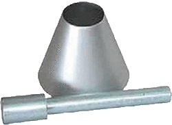 Used for specific gravity and absorption of fine aggregates. The equipment comprises of a conical metal mould 1.5” dia at the top, 3.5” dia at the base and 2.7/8” in height and a metal tamping rod weighing 12 ounces and having a flat circular tamping face 1” dia.
